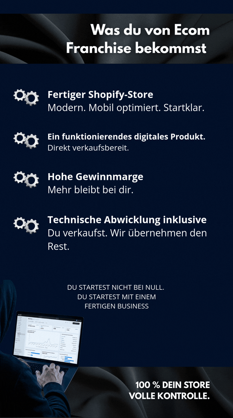 Fertiger Shopify-Store inklusive funktionierendem digitalen Produkt. Höhere Gewinnmargen. Keine Produktsuche. Kein Chaos.